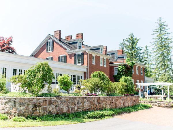 Our outdoor ceremony location at The Manor is simply breathtaking, with a picturesque pergola and the historic mansion as your backdrop—the perfect setting for both your vows and stunning wedding photos.